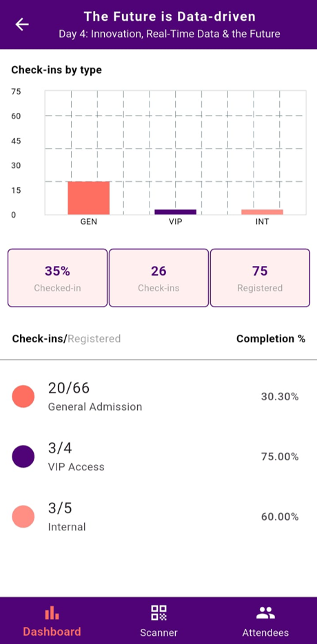 - Use the Scanner to scan QR codes and check attendees in.