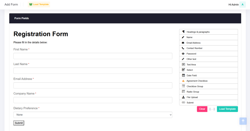 Form templates help you build forms faster by providing ready-made ones that you can customise to fit your event needs.