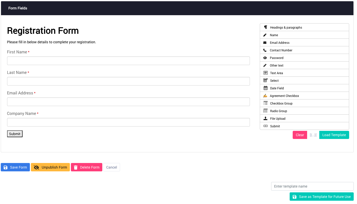 Save your own forms as custom templates for easy reuse. When you’re happy with a form design:
