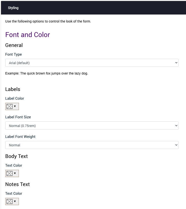 - Choose a font that applies to all form text—including thank-you messages and post-submission emails.