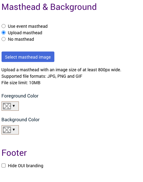 - You can replace OUI-branded footer with your own logo and branding by checking Hide OUI branding.