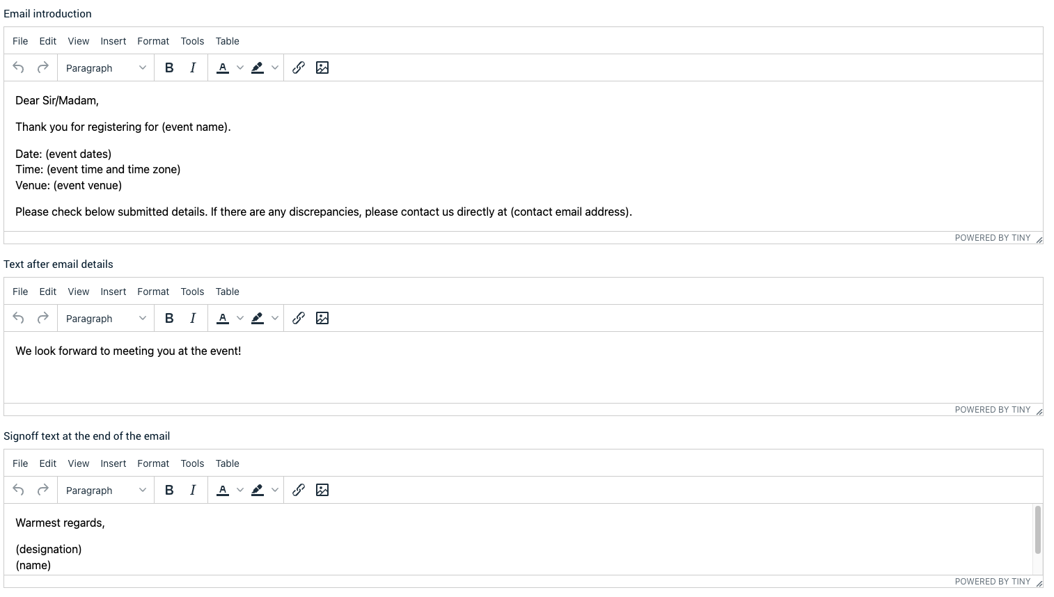| Display Message Before Registration is Opened | A message shown to attendees who access the form before registration opens. |